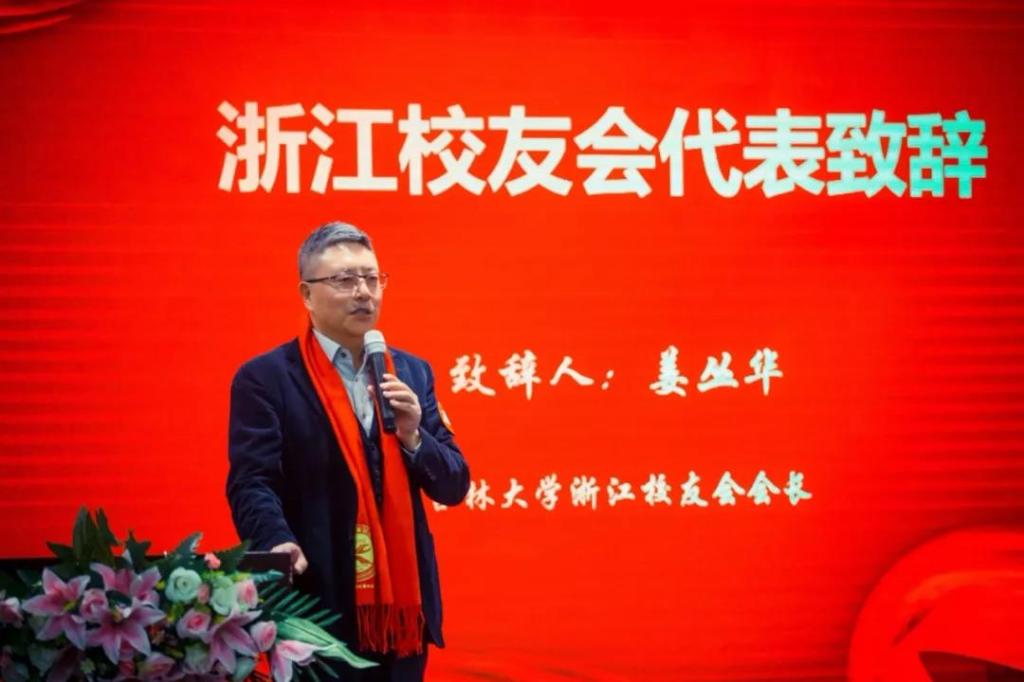 随后,吉林大学浙江校友会会长姜丛华代表校友发言,表达了对吉林大学浙江校友会不断发展和壮大的喜悦,并恭喜计算机分会的成立,愿校友会相互扶持,共创辉煌。
