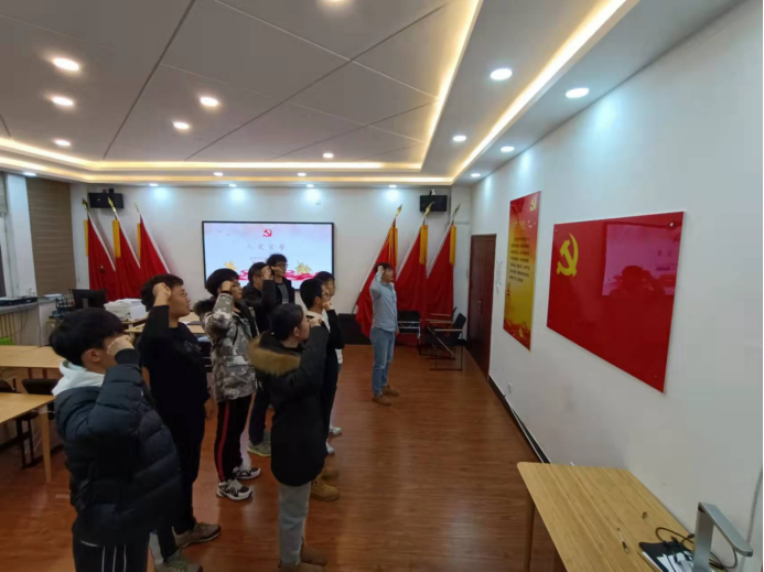 软件工程专业硕士学生第二党支部在计算机楼B340党员之家举行预备党员入党宣誓仪式,在党支部参会的正式党员的见证下,吴琦等8位同志进行入党宣誓。