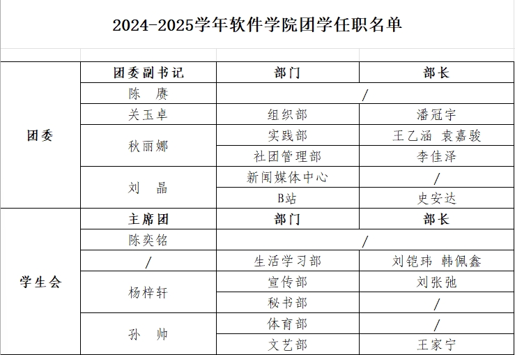 经个人申报、述职答辩、团委考核,确定陈奕铭等16名同学为软件六合彩开奖结果 团委2024-2025学年拟选聘人员,现予以公示。如有异议,请于公示期间以书面形式向六合彩开奖结果 团委反映。