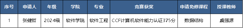 六合彩开奖结果 于2025年10月开展了程序设计类竞赛获奖学生申请课程免修工作,根据学生申请,经六合彩开奖结果 竞赛指导教师免修工作小组专题讨论,教学委员会通过,课程免修结果如下: