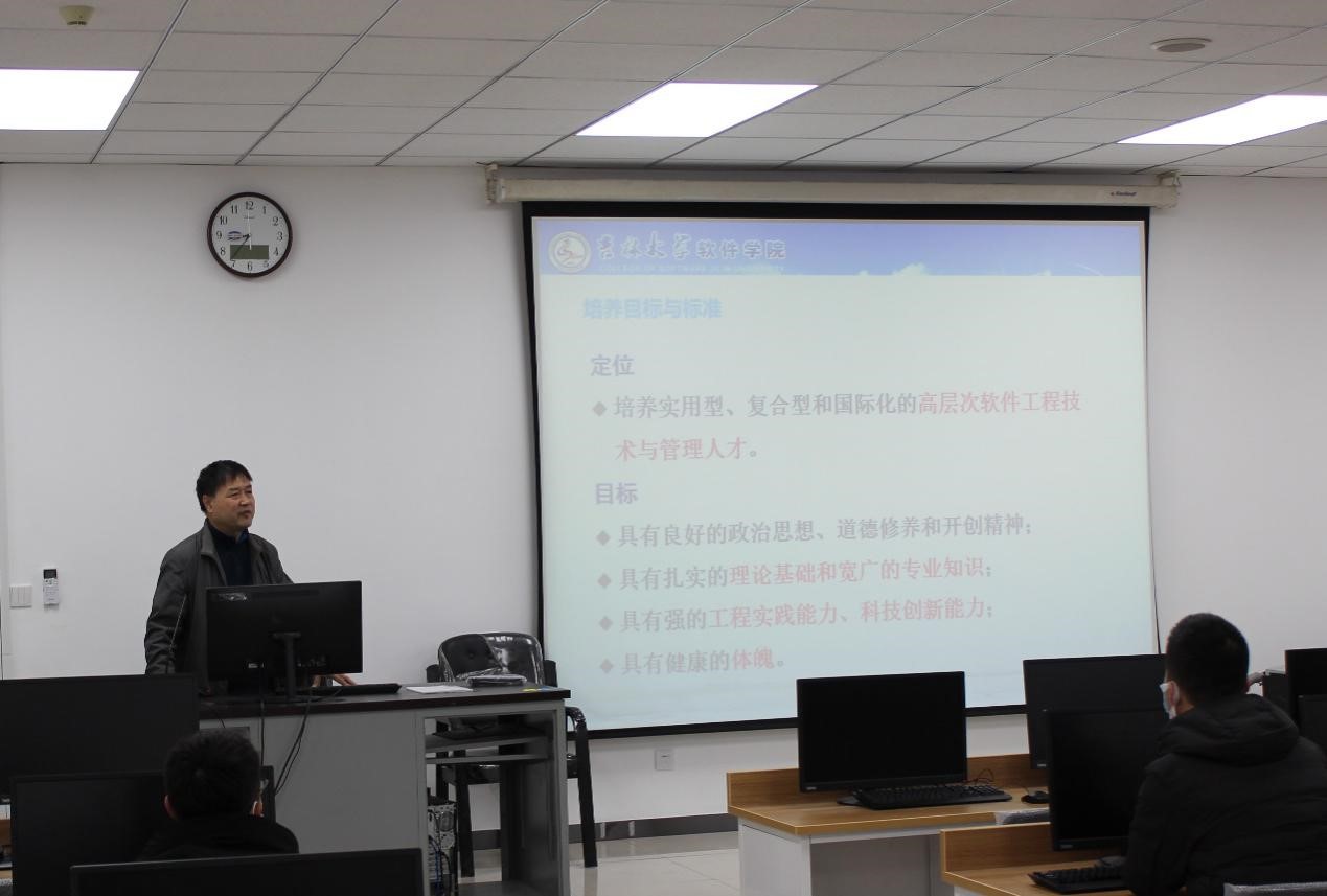 副院长杜天宝老师简单介绍了吉林大学计算机系的建系与发展,分析了研究生阶段学习的特点,指出了与本科生培养的不同之处,强调了创新的重要性。就研究生阶段的努力方向、人才培养标准、科学道德与学风建设这三个方面进行了详尽的介绍与阐述。鼓励同学们做到有创新,品德好,方向明。最后对同学们提出了一些规定与建议,指出“未来的世界:方向比努力重要,能力比知识重要,健康比成绩重要,生活比文凭重要,情商比智商重要。”