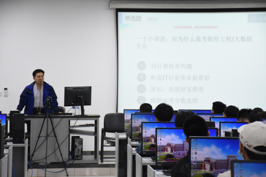 特邀请副院长郭东伟老师在计算机楼为新生做专业教育讲座。讲座由2020级辅导员谭欣老师主持。