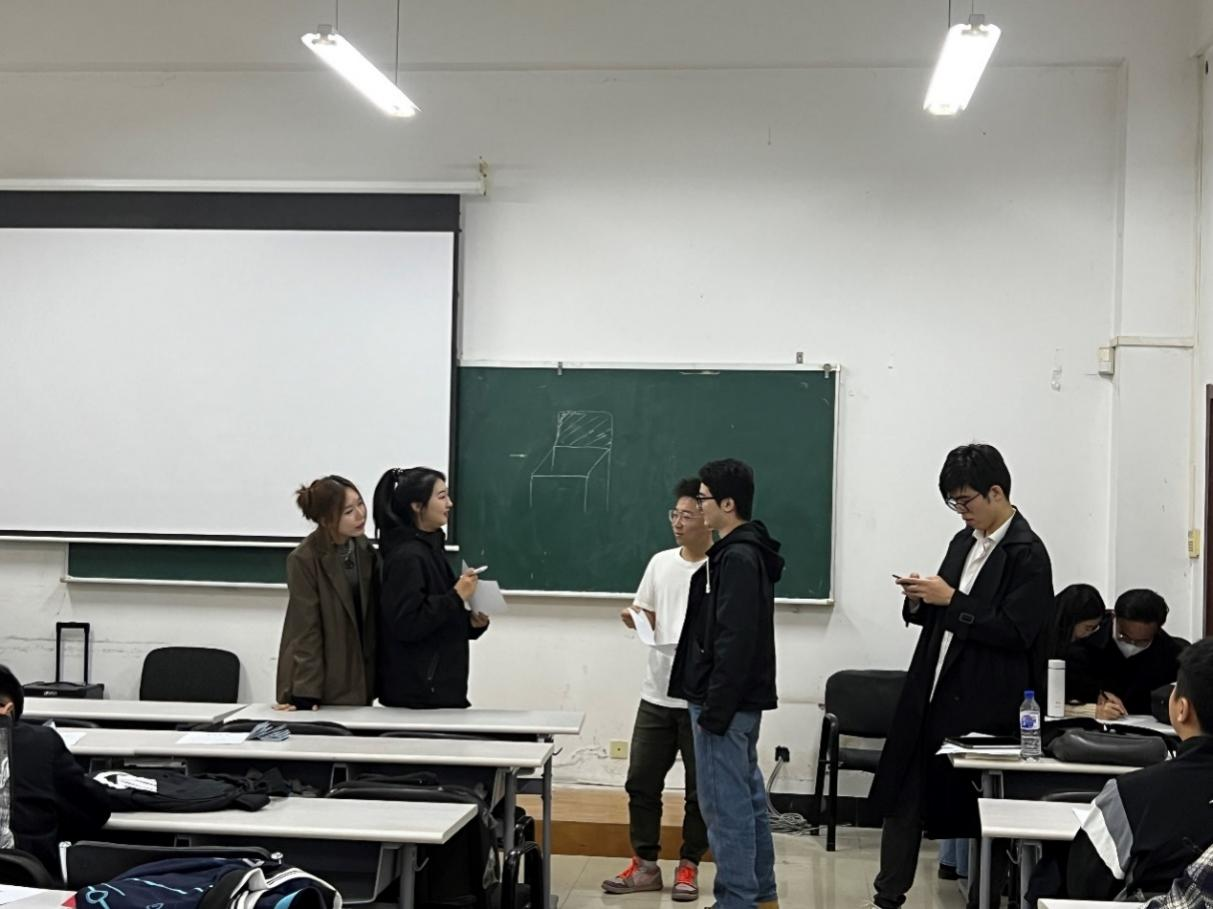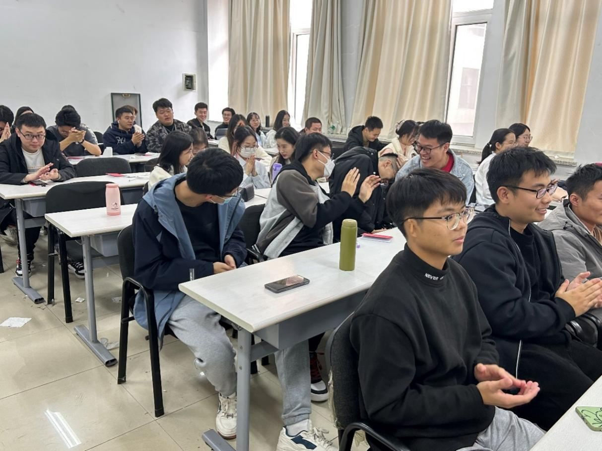 活动首先从“一分钟鼓掌”开始。同学们鼓掌祝贺自己进入研究生阶段,并预期自己一分钟鼓掌的次数,与实际次数相比较,以培养同学们的自我认知和预期能力。接下来是“我知道”活动,同学们分好小组,从相互自我介绍开始,到聊一些互相感兴趣的话题,大家从不陌生到对彼此有了更深的了解。然后是“人体字母”活动,每组同学用身体摆出了LOVE、SUNSHINE等单词,其他组成员轮流猜是什么单词。这个活动不仅锻炼了同学们的团队协作能力,还通过身体语言的方式让同学们更好地理解彼此,增进相互之间的了解和信任。最后是“绘画传递”环节,这个环节由一个团队负责绘画,描绘出一个词语的含义,其他同学则要通过观察和推测来猜测这个词。活动中,绘画者和猜者都表现出了极高的热情和参与度。当猜者成功猜出答案时,他们欢呼雀跃;当答案难以猜测时,他们积极思考,互相讨论。这种积极的互动氛围让整个活动充满了欢乐和活力。