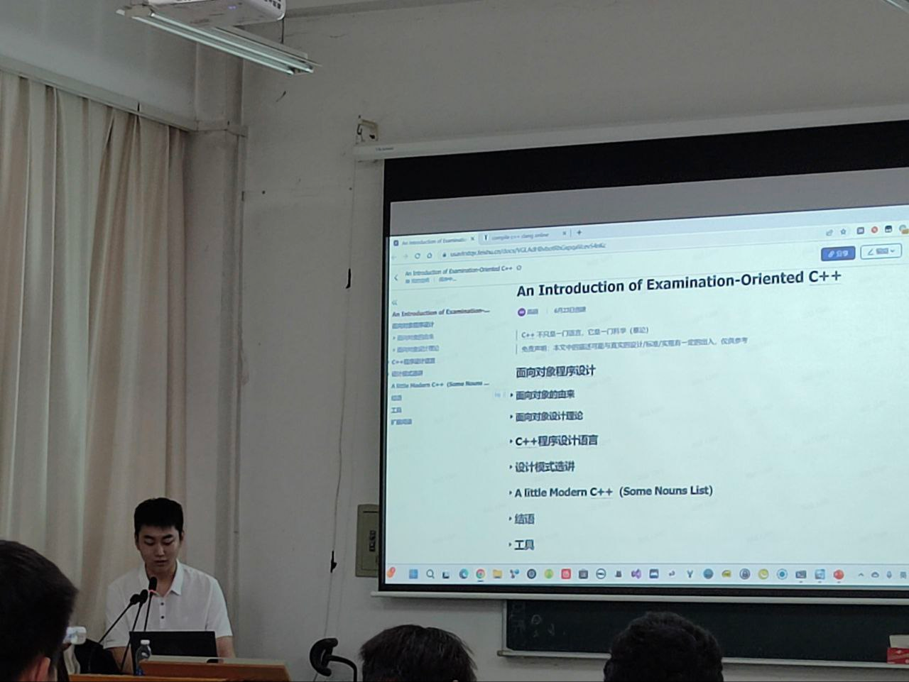 研究生高硕主讲。学长通过细致的讲解帮助同学们梳理了C++语言的知识框架、面向对象程序设计的原则和实践,明确了学习的方向。同学们得到了面向对象程序设计思想的学习经验和好的技巧方法,同时进一步提高了社团举办活动的能力。