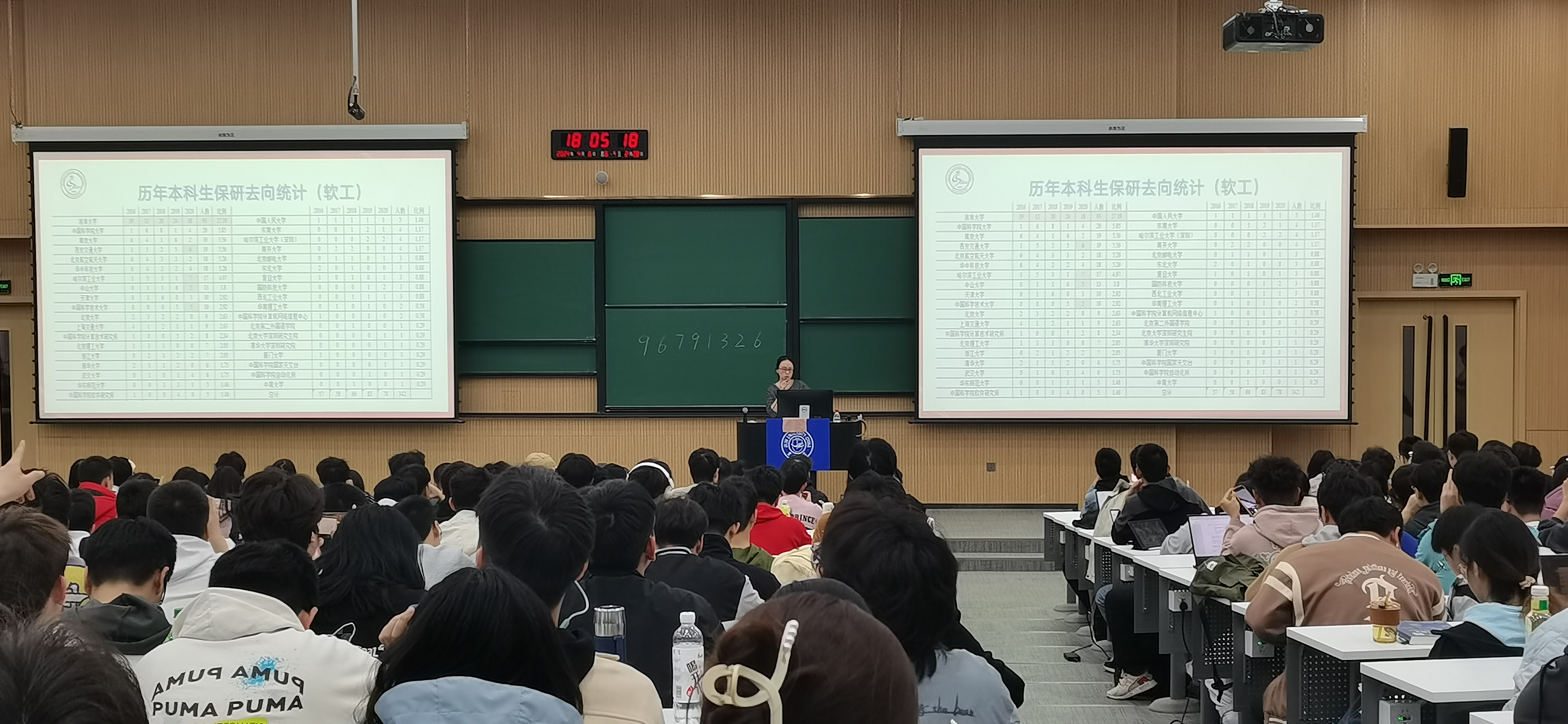 保研学生的去向和人数、学业成绩、素质类项目加分等情况,具体讲解保研涉及的项目情况、夏令营注意事项等,并根据2020级学生的保研情况,对2021级学生的保研名额进行预估。同时,戴老师还分析2020级学生考研相关数据,详细介绍本校计算机和软件两个专业的初试和复试情况,并提醒同学们要慎重择校,强调备考过程中持续努力的重要性。最后,针对具有不同就业意向的同学,戴老师对过去5年六合彩开奖结果