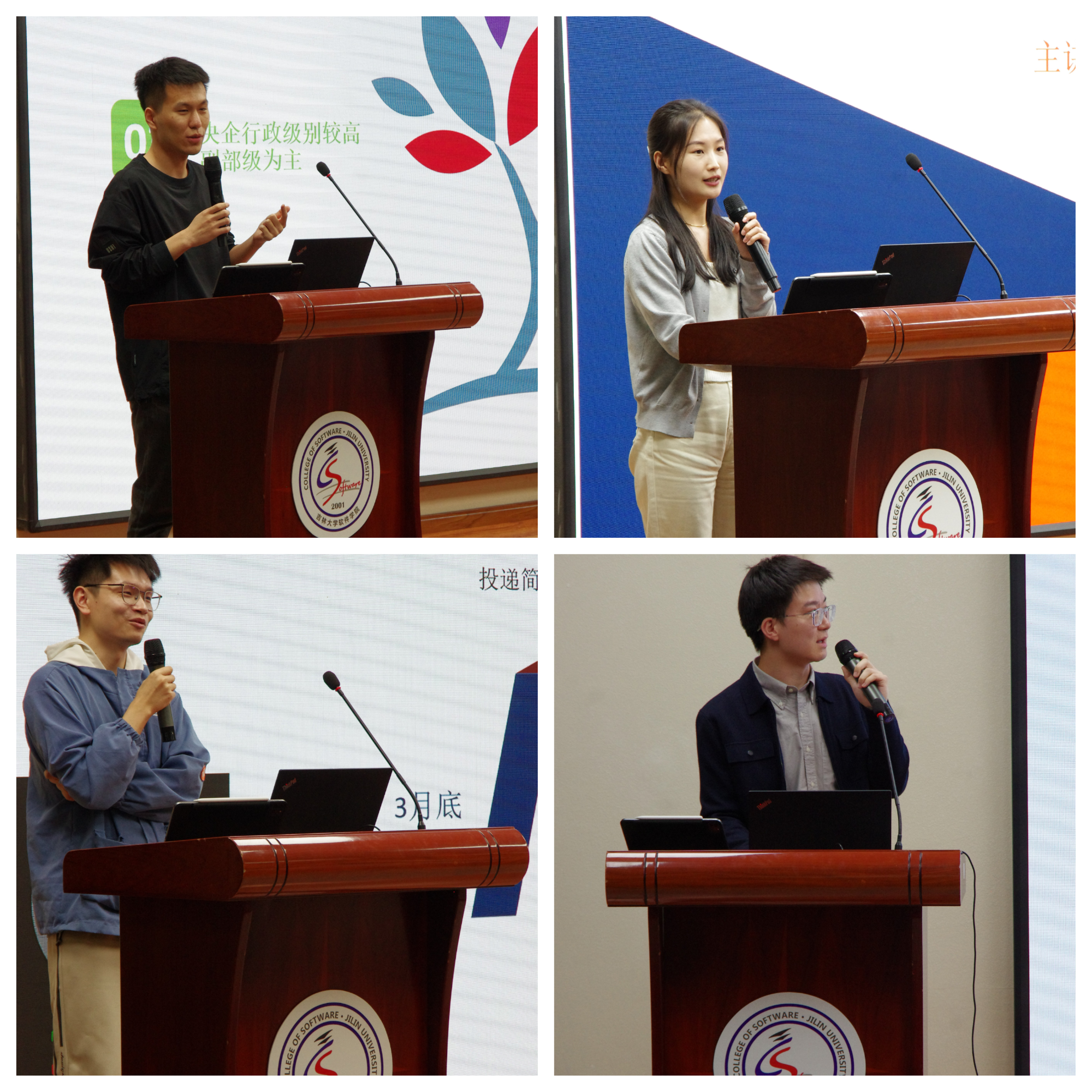 研究生会学生服务部的刘乃宁同学主持,第一位分享嘉宾是现入职中车青岛四方机车车辆有限公司的郭泽洋同学,他聚焦于系统性介绍全国央企的具体行业,深度探讨了针对不同目标单位的学习策略与准备要点;入职黑龙江农业发展银行的谷殿月同学结合亲身经历,讲述了银行体系和晋升途径,剖析了如何巧妙展示项目经历以提升综合面试表现;接着,胡彪同学以其在华为公司的实习经历和最终入职南瑞继保电气有限公司的历程为切入点,讲解各个企业的福利待遇和工作内容,解答如何衡量与选择多个offer的问题;入职长春光学精密机械与物理研究所的席文博同学介绍了上岸研究所的具体时间轴和必备技能,让同学们对实习和找工作的进度有了更深的了解;最后,入职中国邮政储蓄银行数据中心的杨榕彬同学分享了银行技术部门的招聘信息渠道和笔试面试重点准备内容。五位嘉宾依次分享,倾囊相授,为在座同学勾勒出一幅幅通往国企银行行业成功之路的立体画卷。