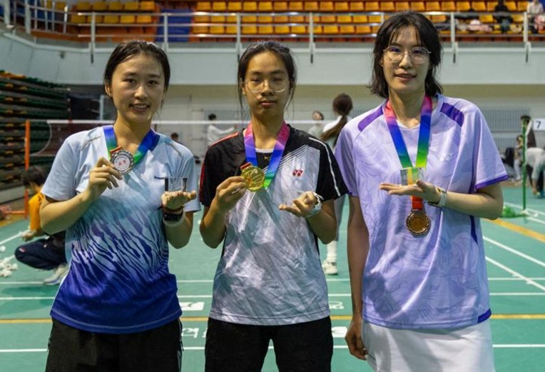 女单比赛中, 24级6班的矫季菲同学和1班的尹多加同学脱颖而出。矫季菲凭借精妙的网前小球技术和精准的高远球控制,展示了出色的比赛表现;尹多加每一次挥拍都精准无比,展现了极强的力量与速度控制,成为赛场上的亮点。