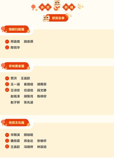 活动结束后,评审团队从作品的主题契合度、原创性、艺术表现力等多个维度进行评选,各赛道评选出一等奖两名、二等奖三名、三等奖若干名。此次大赛不仅增强了学生对传统文化的认同感,也激发了大家传承弘扬优秀文化的热情,让传统文化在新时代焕发新生机。
