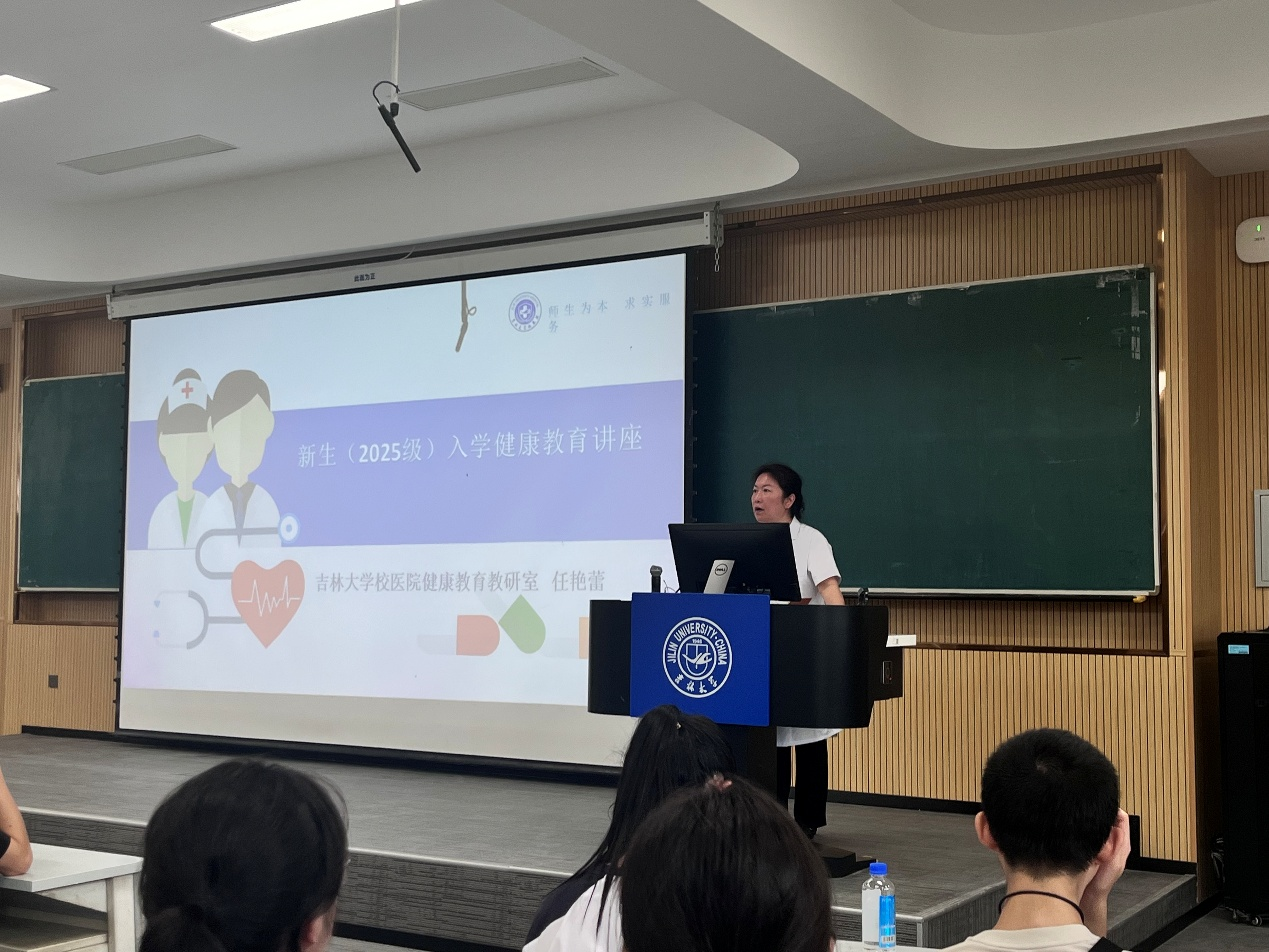 2025级新生入学健康教育讲座在第三教学楼第九阶梯教室成功举办。本次讲座旨在帮助新生快速了解校园健康保障相关内容,提升健康意识,更好地开启大学生活。校医院任艳蕾主任担任主讲人,全体2025级本科新生参与本次讲座。