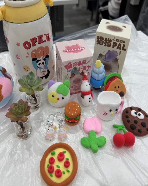 核心创作环节中,现场氛围专注。同学们通过揉、捏、塑、刻等手法,将情绪与想象转化为立体作品。每件软泥作品皆为创作者当下心境的直观呈现,创作过程本身便是一次有效的自我探索与情绪疗愈。