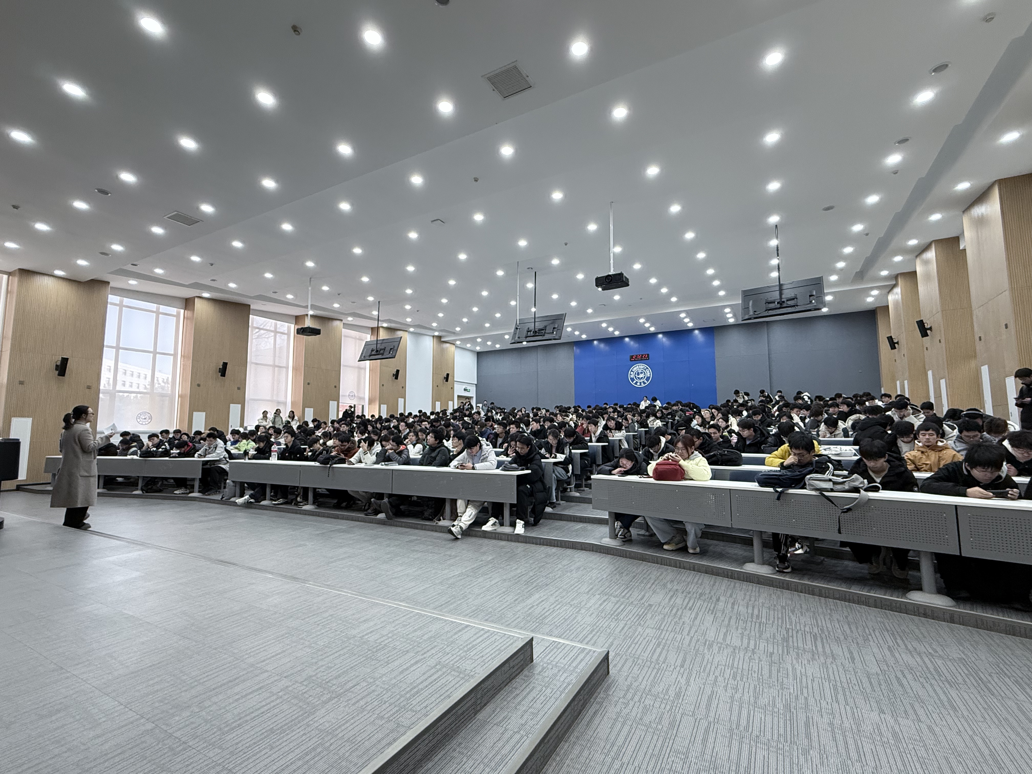 在敬信教学楼第一阶梯教室楼召开考风考纪暨期末工作主题年级大会。会议由2025级辅导员戴嘉宜主持,2025级全体本科生参会,围绕考风考纪、学业管理、宿舍安全及寒假规划等内容展开。