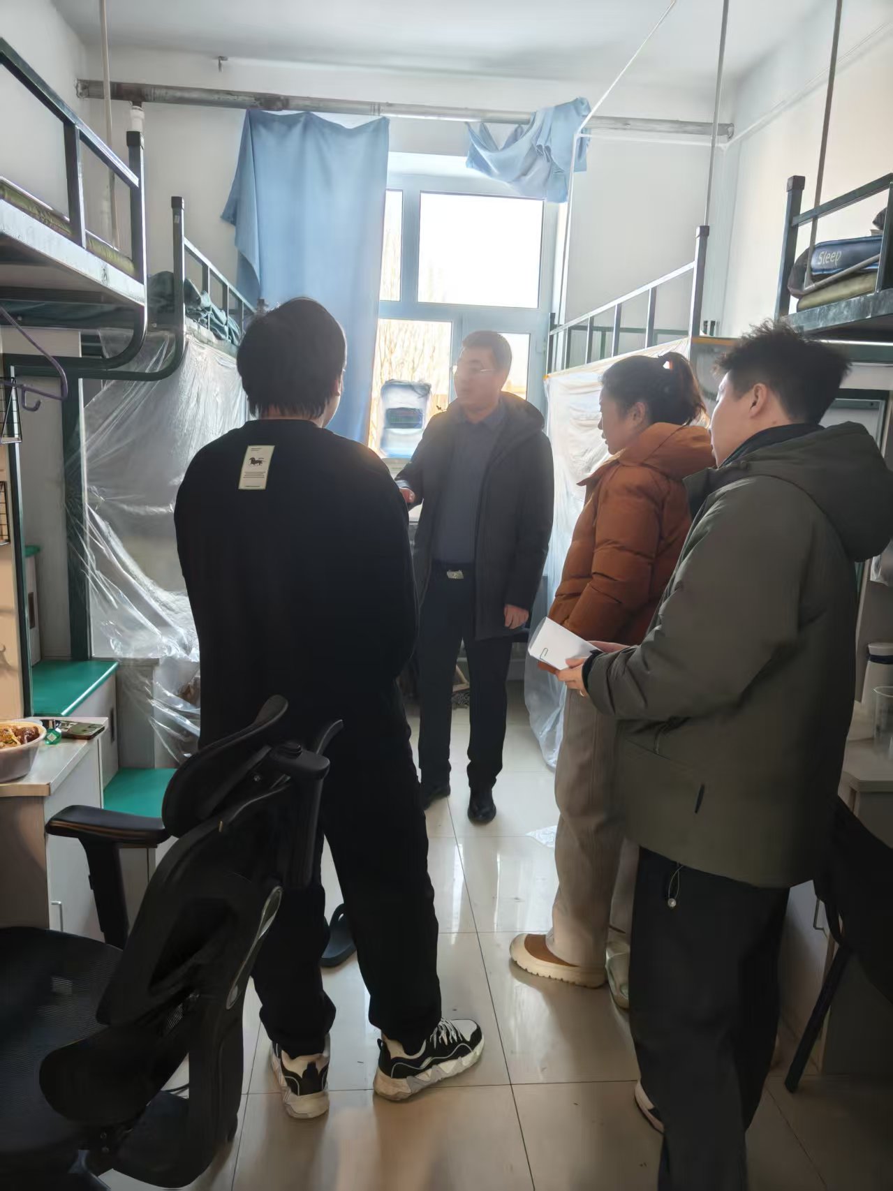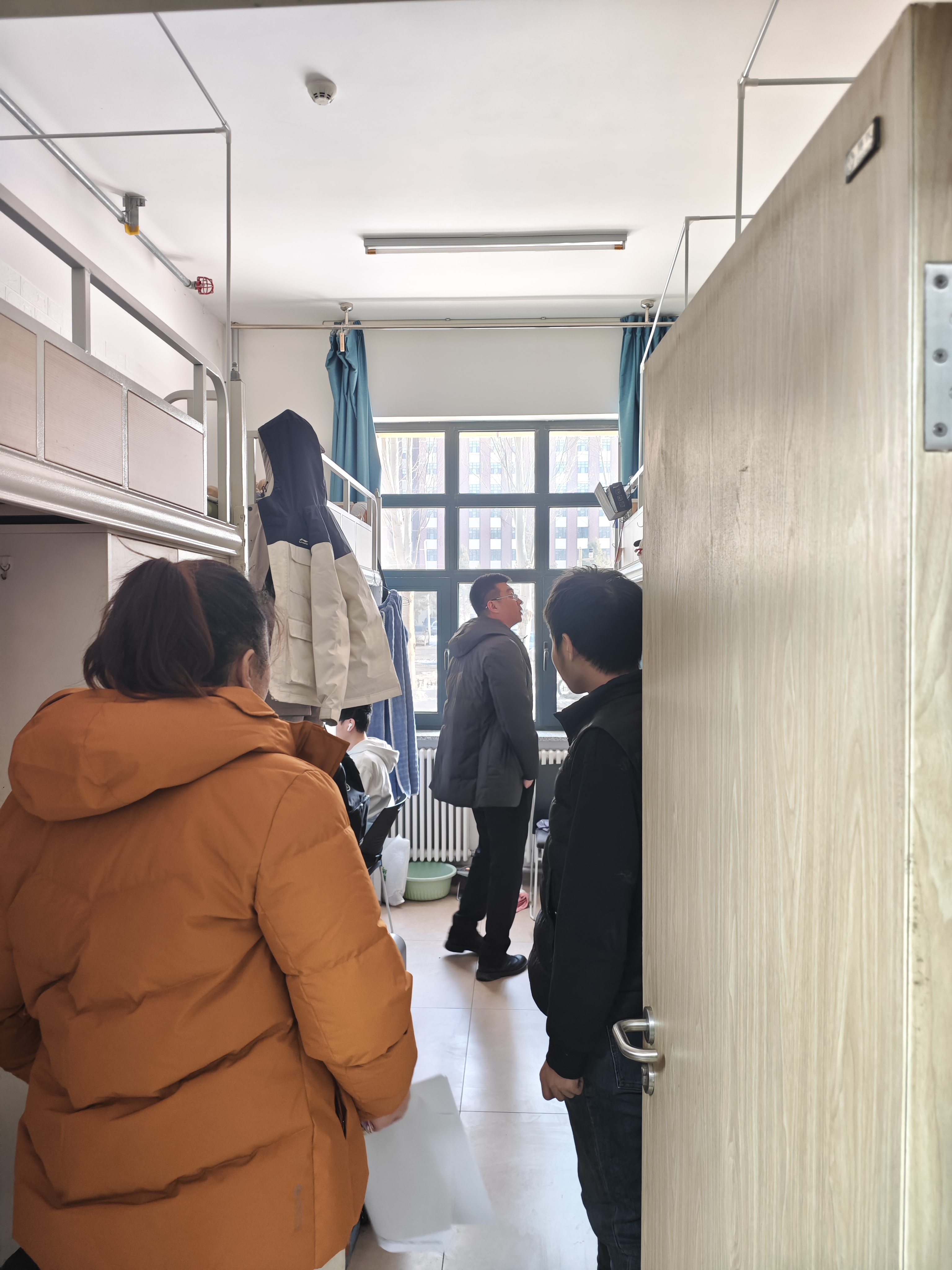 党委副书记冯羿铭、研究生辅导员张译心带队,联合学生骨干组成检查小组,围绕学生离校动态核查、公寓楼电气改造前期准备、保障物资发放及留校学生安全教育四大重点开展工作,为全体研究生平安假期筑牢安全屏障。