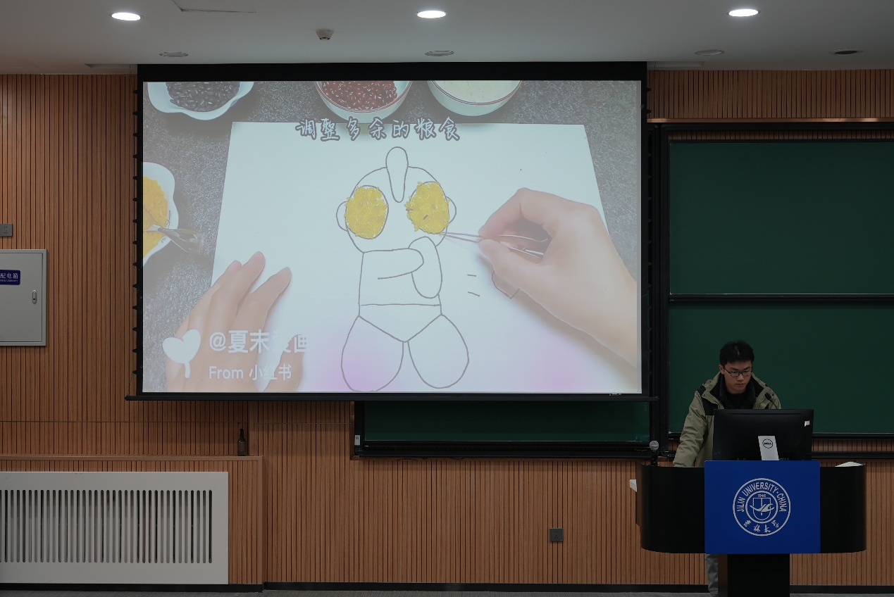 活动伊始,主持人通过PPT讲解与实物展示,细致介绍了两项传统手工艺的历史渊源、文化内涵与制作流程。粮食画以五谷杂粮为天然“颜料”,通过精心挑选、细致拼贴,将大米、红豆、绿豆等谷物化作花草、鸟兽等精美图案,尽显农耕文化底蕴。纸浆画以废旧纸张为原料,经浸泡、捣碎、调色、堆叠、塑形等步骤,打造出质感粗粝、立体感十足的浮雕画作,让废弃纸张变废为美,生动诠释了绿色环保与艺术创作的有机统一。