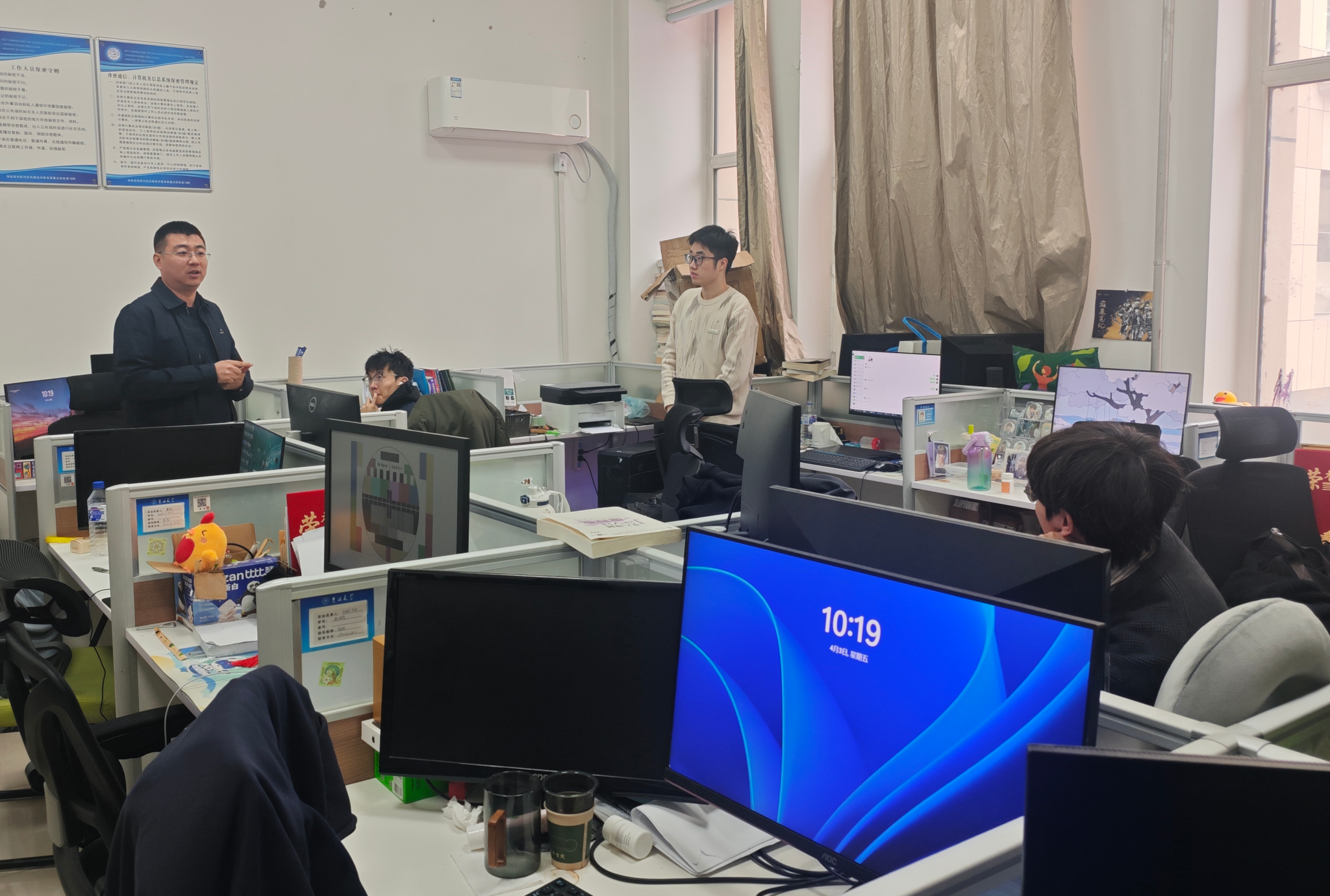 走访过程中,老师们重点对实验室用电安全、设备运行规范、网络信息安全、环境卫生等核心方面开展细致排查。仔细检查了实验室内电脑、服务器、供电线路等是否存在违规使用、老化破损等问题,认真查看实验室门窗关闭、消防设施配备情况,对发现的细小安全隐患现场督促整改,坚决杜绝安全事故发生。在与研究生们交流时,冯书记询问了大家近期的科研进展、项目推进情况以及生活中遇到的难题,耐心倾听同学们的诉求与建议,针对大家在科研攻关、论文撰写、假期安排等方面的困惑,给予针对性的指导与解答。结合清明节传统节日内涵,引导同学们传承红色基因、缅怀革命先烈,树立文明祭祀、绿色祭祀的理念,自觉摒弃陋习,度过一个文明、平安的节日。同时,反复叮嘱同学们假期出行务必注意交通安全、人身财产安全,严格遵守六合彩开奖