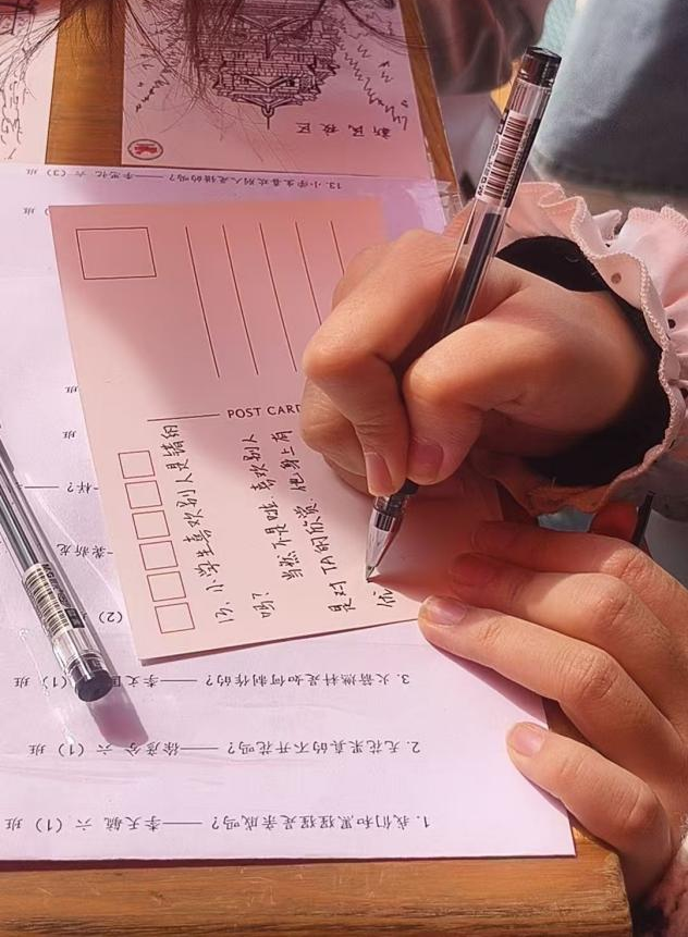 活动前期,工作人员精心筹备,提前梳理汇总山区儿童的科普疑问与成长困惑,并完成场地布置,摆放好明信片、信封、彩笔等物资,明确现场分工,为活动顺利开展奠定坚实基础。活动现场井然有序,参与者们认真挑选明信片,结合自身专业知识与生活经验,仔细誊写对孩子们疑问的详细解答与暖心祝福。志愿者们积极引导到场人员了解活动规则,协助扫码入群,以便获取活动相关资讯。现场交流氛围热烈,同学们围绕如何解答孩子们的疑惑展开探讨,从成长烦恼到自然科学知识,纷纷以笔为媒,传递跨越山海的陪伴。