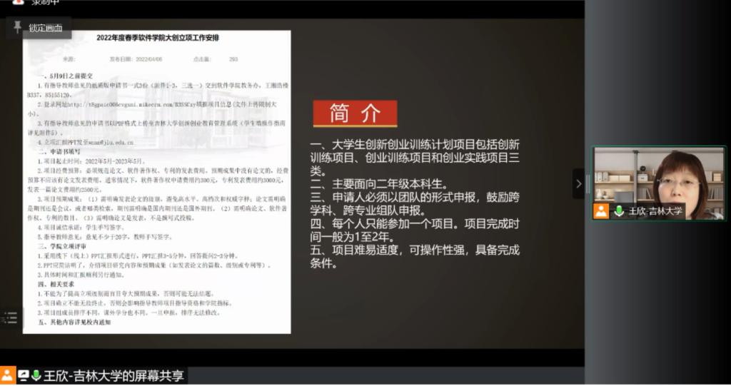 项目举例告诉大家撰写大创项目的申请书很重要,规范申请书格式也同样重要。讲座过程中,有同学就学习吃力是否适合做大创等问题与王欣老师进行了在线沟通。讲座最后,王欣老师希望通过本次讲座,助力同学们的创新创业小舟扬帆起航。