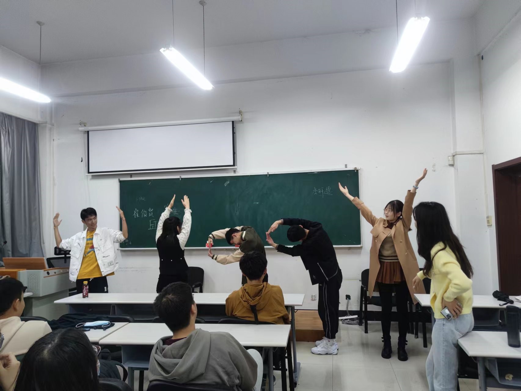 最后是“人体字母”活动,每组3-6名同学,用身体摆出了HAPPY和ARE等单词,其他组成员轮流猜是什么单词。让同学们提高空间立体感,培养良好的团队合作能力和意识。