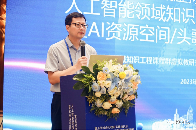 天津大学王鑫教授分享了知识图谱在虚拟教研室建设中应用的思考和实践,他首先介绍了知识图谱的基本概念和应用,随后以天津大学知识工程课程为例讲解了知识图谱在课程教学中的应用,最后分享了知识工程虚拟教研室建设的相关进展。