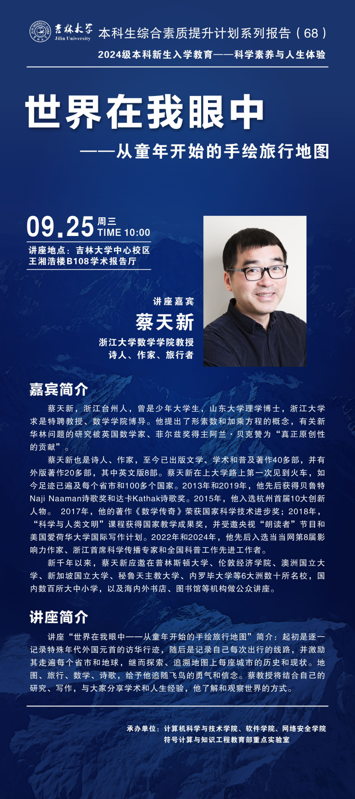 报告地点:吉林大学中心校区王湘浩楼B108学术报告厅